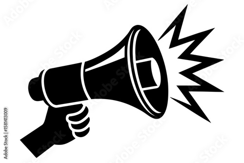 Hand holding megaphone announcement black silhouette vector illustration