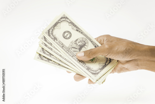 hand holding packs of American dollars banknote