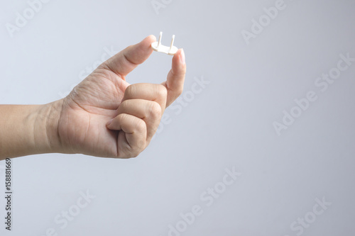 Hand holding safety plugs