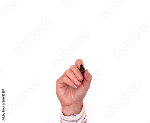 hand in writing position on white background