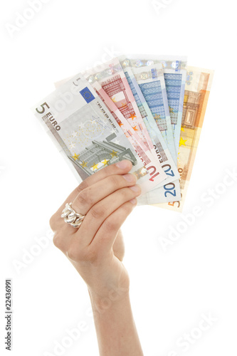 Hand is holding euro money over white background