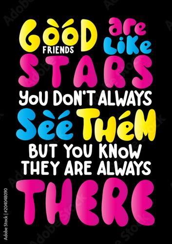 Hand Lettered True Friends Are Like A Stars, You can Not Always See Them But You Know They are Always There. Handwritten Inspirational Motivational Quote.
