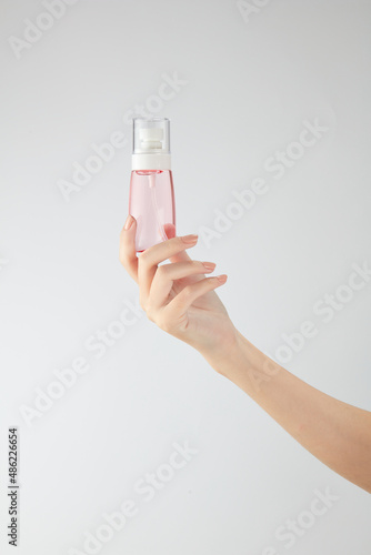 Hand model holding a cosmetic jar with a white background for cosmetic advertising