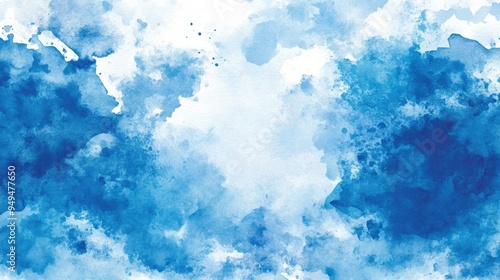 Hand painted illustration of a blue watercolor frame