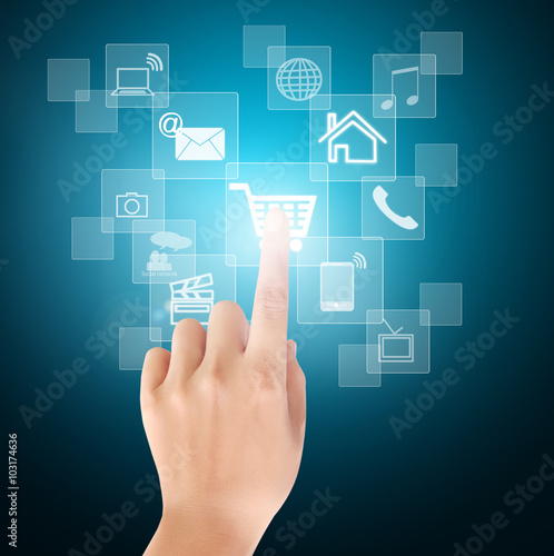 hand pressing social buttons