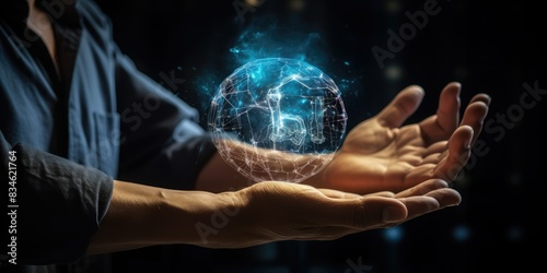Hand touching brain of AI, Symbolic, Machine learning, artificial intelligence of futuristic technology. AI network of brain on business analysis