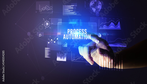 hand touching digital button, modern technology concept