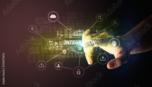 Hand touching INTEGRATION inscription, Cybersecurity concept