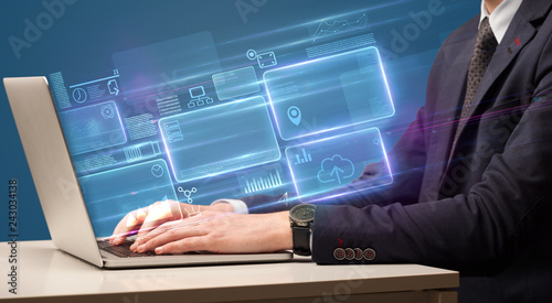 Hand typing on laptop with online accounting system concept
