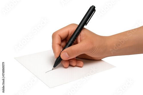 Hand writing or signing on paper with pen, creating message or drawing, transparent background