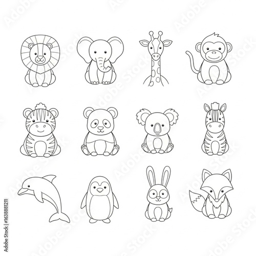 Hand-Drawn Animal Icons Vector Set Outline.eps
