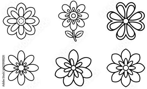 Hand-Drawn Floral Vector Icons Set – Abstract Flower Outline Clipart Collection
