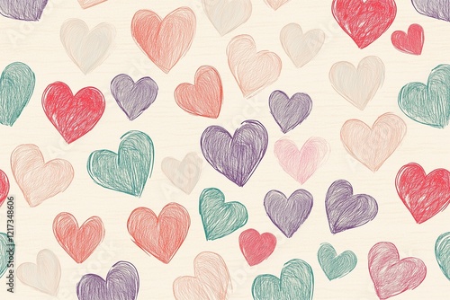 Hand-Drawn Heart Pattern in Pastel and Bold Colors