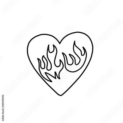 hand-drawn heart with burning fire icon