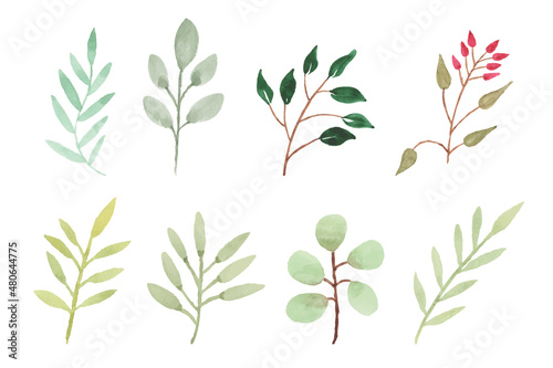 Hand-drawn leaves with watercolor
