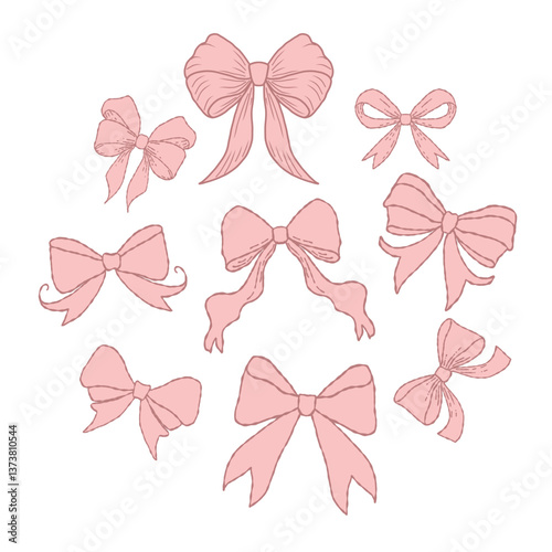 Hand-Drawn Pink Bow Set for Decoration