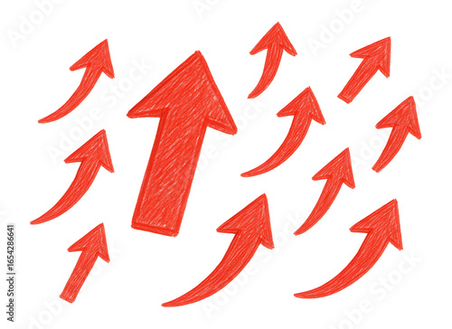 Hand-drawn red up arrow icons for business and education.