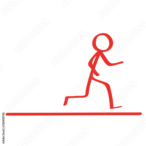 Handgezeichnetes Männchen rennt in rot