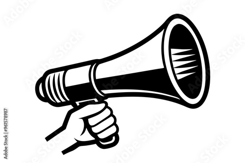Hand-holding megaphone bullhorn silhouette isolated on a white background