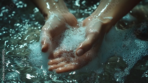 Hands cupping water and bubbles a serene scene