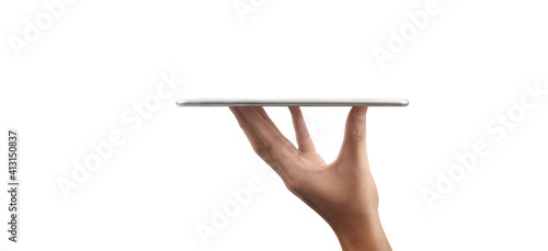 Hands holding tablet touch computer gadget