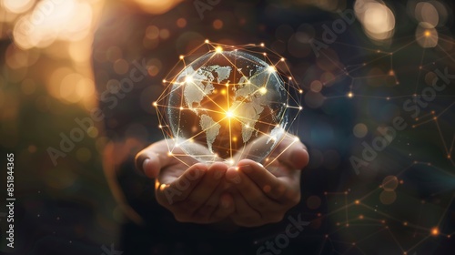 Hands Holding Glowing World Network Representing Global Connectivity and Innovation
