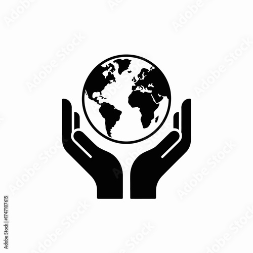 Hands Holding Planet Icon – Earth Care and Environmental Protection Symbol
