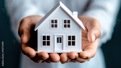 Hands holding white model house