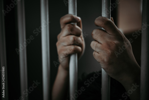 Hands of men desperate to catch the iron prison,prisoner concept,thailand people,Hope to be free.