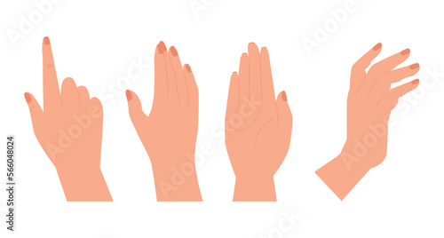 Hands set design in cartoon style. Hand shows different gestures signs. Collection isolated on white background. Vector