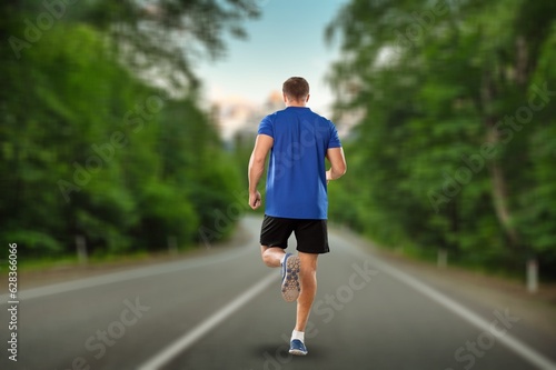 Handsome and fit sporty man running or jogging