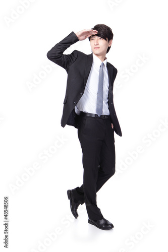 handsome business man looking to copy space