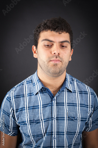 Handsome man doing different expressions in different sets of clothes: sad