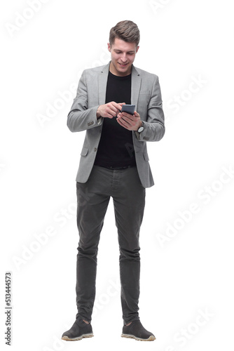 handsome man reading a text message on his smartphone