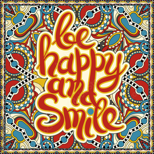 handwritten lettering inscription be happy and smile concept ins