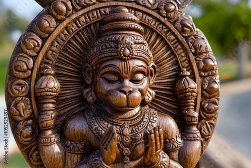 Hanuman in a meditative pose, his eyes closed, symbolizing his deep devotion to Lord Rama