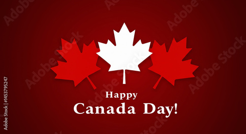 Happy Canada Day Banner with Maple Leaves on Red Background