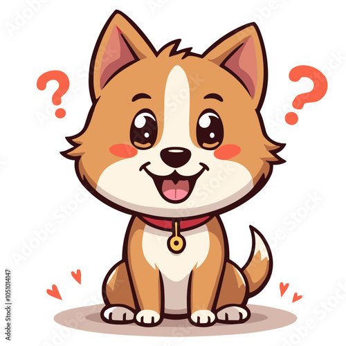 Happy Cartoon Dog with Question Mark Against