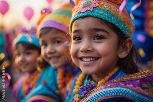 Happy children celebrating Children's Day in colorful costumes