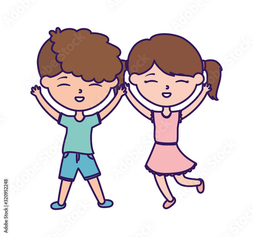 happy childrens day, little boy and girl celebration excited cartoon
