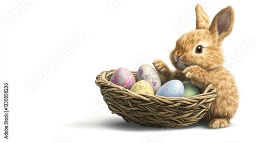 Happy easter day bunny with colorful eggs in a basket spring vibes
