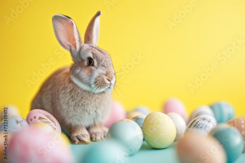 Happy Easter Eggs Basket orange glow. Bunny in flower easter Family decoration Garden. Cute hare 3d sales easter rabbit spring illustration. Holy week Render Farm card wallpaper bud
