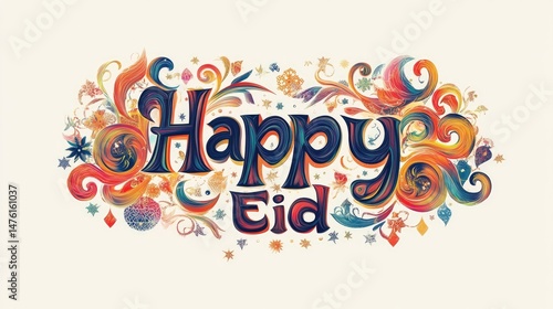 "Happy Eid" typography vector with festive design