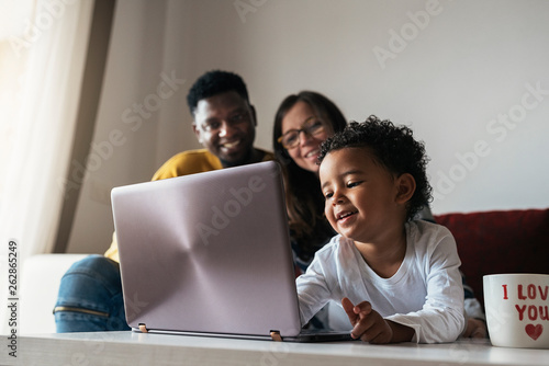 Happy family having fun at home. Multiethnic family concept.