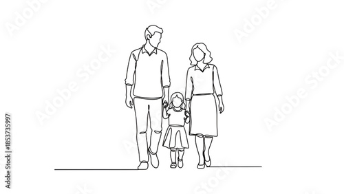 Happy Family Portrait in Simple Line Art with Minimalistic Style and White Background for Advertising