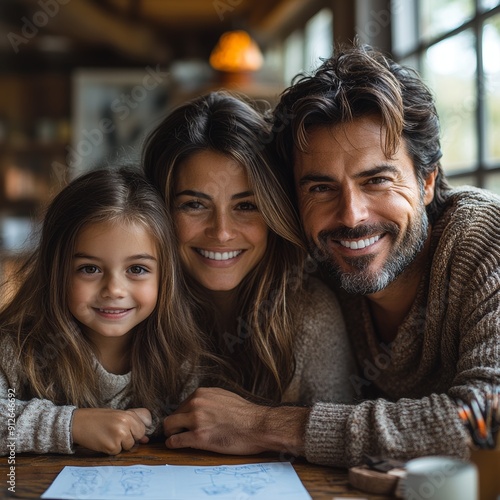 Happy Family Smiling and Studying Together
