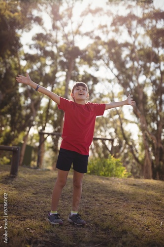Happy girl cheering during obstacle course