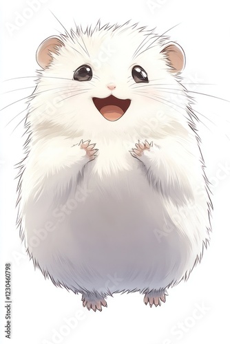 Happy hamster, paws up, white fur, isolated, cute pet