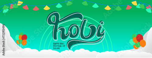 Happy Holi Festival Of Colors banner in colorful modern geometric style. Holi Festival greeting card cover with typography. Vector illustration background