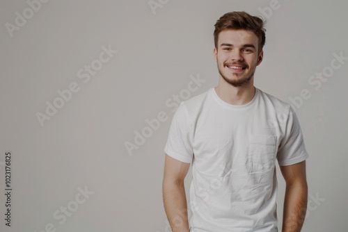 Happy man in casual clothes posing for casting shoot.